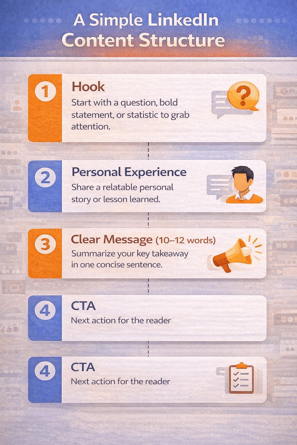 If you are a beginner, here is a simple structure to write a post on LinkedIn: