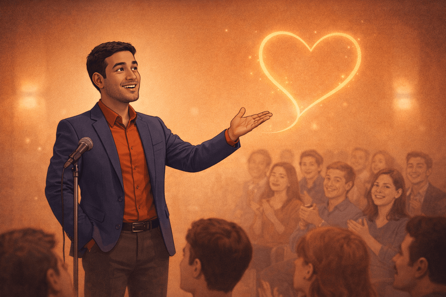 This is where you earn attention. One of my favorite ways to start a speech is very simple. Walk on stage. Pause. Smile. Look at the audience. Let the silence do some work. Then ask a powerful question.